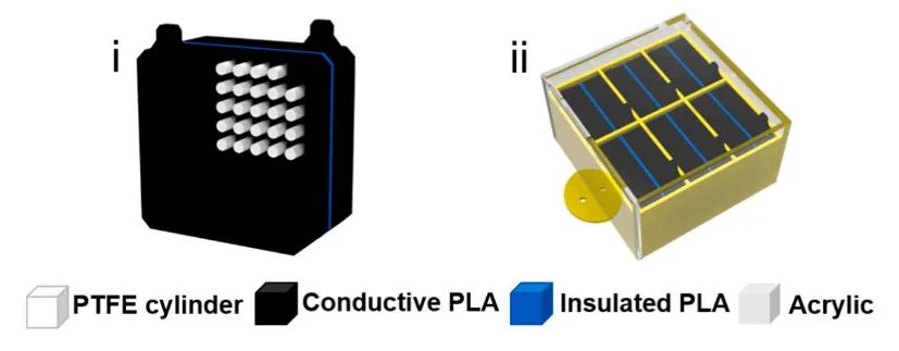 CP-TENG£º²ÉÓöà²ÄÁϺ͵¼µç3D´òÓ¡¼¼ÊõÖÆÔ죬ʹÓõ¼µç¾ÛÈéËᣨPLA£©Ìí¼Ó̼ÏËά£¨CF£©»ò̼ºÚÀ´ÊµÏÖµ¼µçÐÔ¡£CP-TENG¾ßÓжàͨµÀ½á¹¹£¬Ã¿¸öͨµÀÄÚ·ÅÖÃÒ»¸ö¾ÓɲÄÁÏÐÔÄܲâÊÔÑ¡³öµÄ¾ÛËÄ·úÒÒÏ©£¨PTFE£©Ô²Öù£¬ÒÔÌá¸ßµçÄÜÊä³ö¡£Õû¸öCP-TENG±»·â×°ÔÚÒ»¸öÈ«·â±ÕµÄ½á¹¹ÖУ¬ÒÔ±£»¤ÆäÃâÊÜÍⲿ¸ÉÈÅ¡£ÐÔÄܲâÊÔÖУ¬CP-TENGÔÚ·ÀË®ÐÔ¡¢»·¾³Îȶ¨ÐÔ·½Ãæ±íÏÖÓÅÐã¡£²¨ÀËÄÜÊÕ¼¯Ó¦ÓòâÊÔÖУ¬CP-TENG×÷ΪÎÞÏß´«¸ÐÆ÷½ÚµãµÄµçÔ´£¬³É¹¦ÊµÏÖÔ¶¾àÀë´«ÊäÐźţ¬²¢Õ¹ÏÖ³ö׿ԽµÄÄÍÓÃÐÔ¡£
