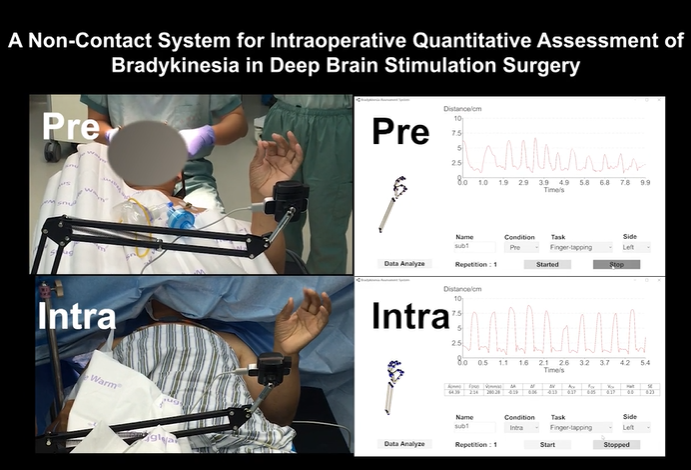 Ningbo Yu, Yang Yu, Jianeng Lin, Yuchen Yang, Jingchao Wu, Siquan Liang, Jialing Wu, Jianda Han, A non-contact system for intraoperative quantitative assessment of bradykinesia in deep brain stimulation surgery, Computer Methods and Programs in Biomedicine, Volume 225, 2022, 107005, ISSN 0169-2607,https://doi.org/10.1016/j.cmpb.2022.107005.