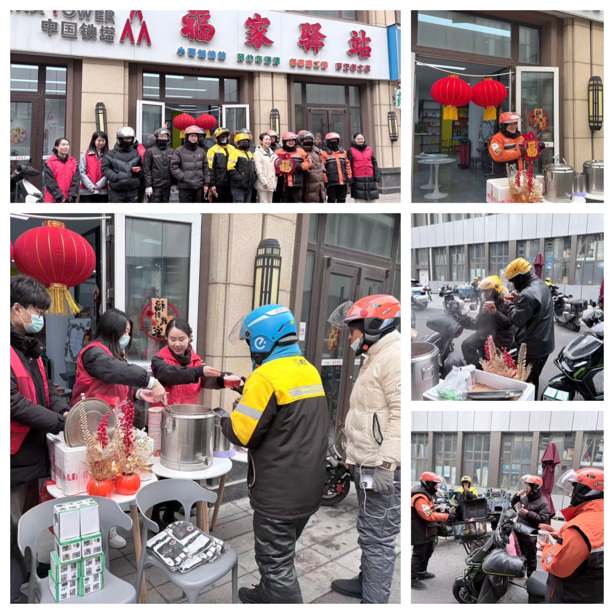 腊八送暖,情系一线。1月26日农历腊八节,淄博铁塔公司联合吾悦商务社区,共同开展“吾‘家’腊八添年味 党建服务暖民心”系列主题活动,通过赠送热粥、组织趣味互动等形式,向辖区内外卖骑手、快递员、商户、保洁及保安等一线劳动者传递节日问候与企业关怀,以实际行动践行社会责任,弘扬传统节日文化。