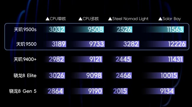 GPU一直是天玑的强项,天玑9500s的GPU给到了最高12核的Immortalis-G925,熟悉芯片的芯片的小伙伴应该知道,这也是旗舰级规格,对游戏性能和能效有基础保证。