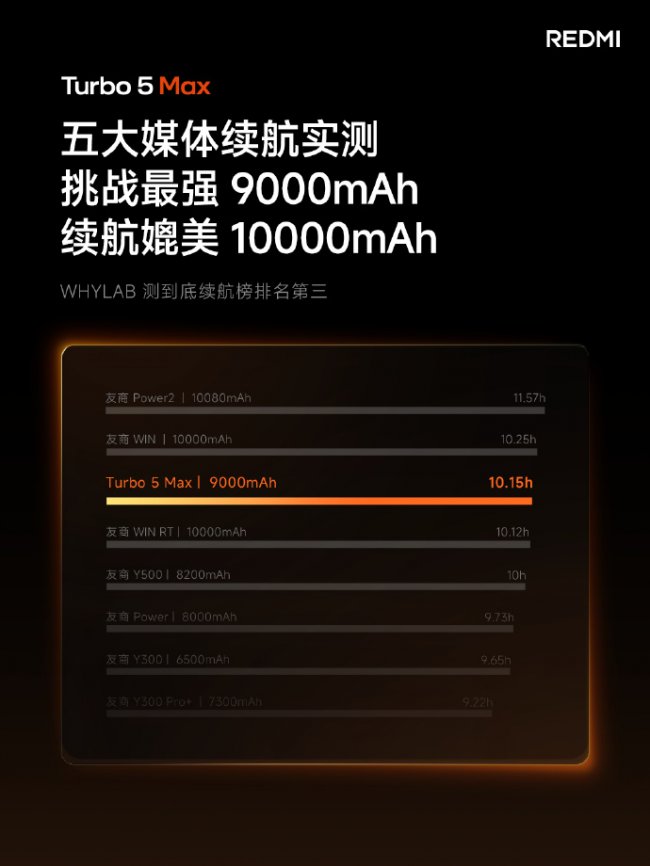 在续航上,Turbo 5 Max更是给出了极致Max的表现。Turbo 5 Max搭载目前小米机型中最大的9000mAh电池,搭配天玑9500s本身就出色的能效控制,这下真没续航焦虑了。