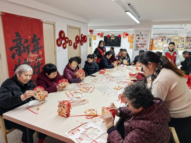 柒号·空间活动室内暖意融融,一场面向老年群体的手工制作活动正在温馨进行。在志愿者的陪伴与协助下,老人们兴致勃勃地制作着红色传统手工艺品。大家围坐桌旁,边做手工边话家常,欢声笑语不断。墙上喜庆的“福”字和“新年快乐”装饰,与老人们手中的作品相映成趣,不仅营造了浓厚的节日氛围,更传递出社区对老年群体的深切关怀,带来温暖。