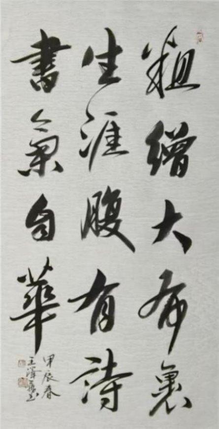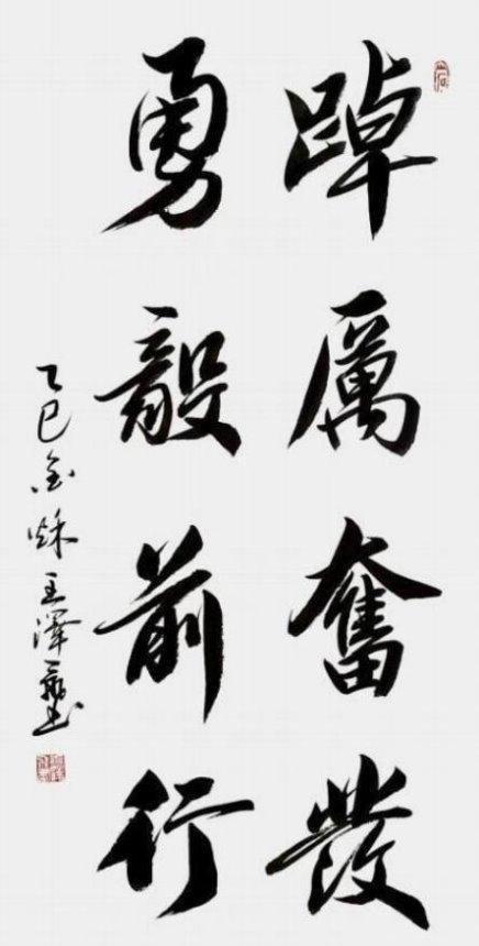 专家评述:王泽飞的作品用笔极具节奏感,沉实处不激不厉、温文尔雅,激荡处行笔如飞,一气呵成,笔下线条跃宕多姿,又富有弹性,可谓韵致盎然,师古而不泥于古,更具创新精神,在古典与现代的结合处,形成了自己有意味的形式。