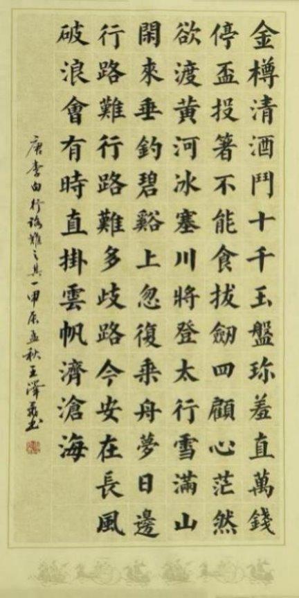 王泽飞,中国一线实力派书法家,国家一级美术师,国礼特供艺术家,著名榜书大家。1963 年 7 月生,浙江义乌人,大专学历。受父辈影响,自幼喜欢写写画画,临摹了历代名家王羲之、柳公权、颜真卿、欧阳询等碑帖。正、行、草、隶、篆各体兼能,尤擅特大抓笔俯地书写 1-4 米见方的正体、行草书,篆刻、小楷也具相当功底。