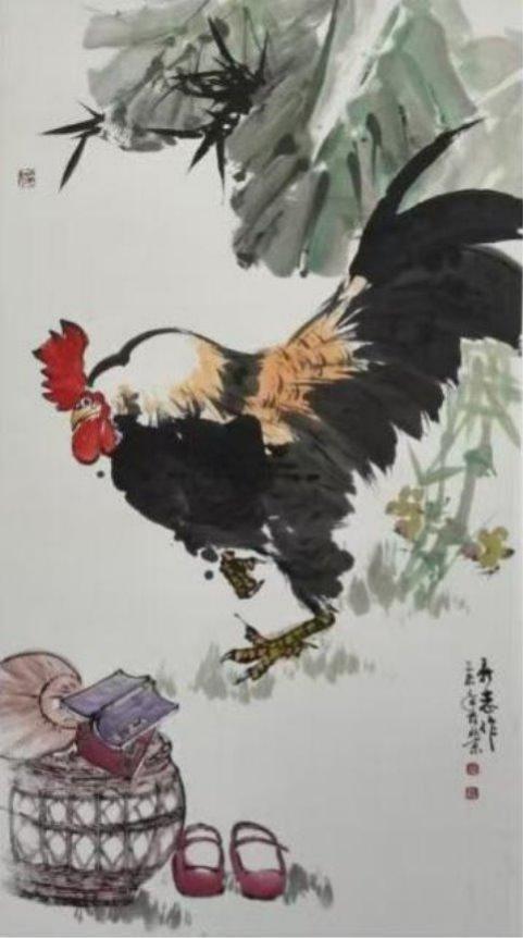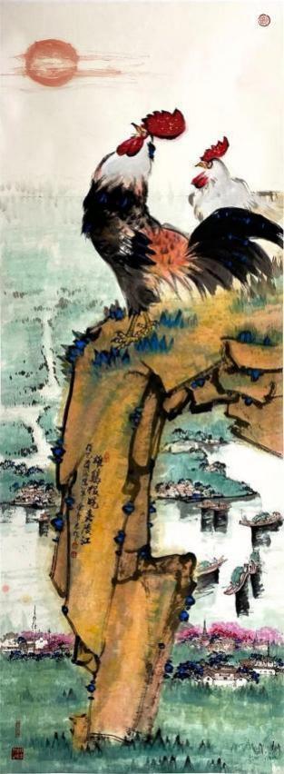 《雄鸡报晓嘉陵江》 248x92cm 2020 年 余新志作