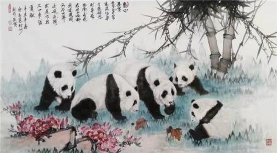 《熊猫国宝情》 136x68cm 2021年 余新志作