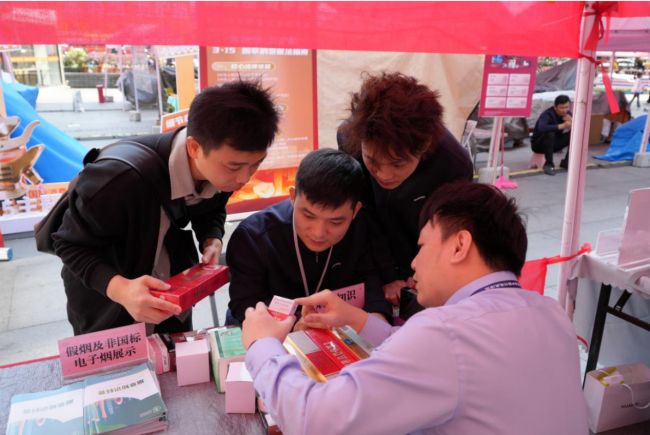 聚焦真假烟识别,筑牢消费安全线。活动现场,针对消费者最关心的卷烟真伪辨别这一高频话题,工作人员从卷烟外包装和防伪标识等方面向消费者讲解辨别真假烟的要点。同时,工作人员还结合近期查处的典型案例,详细讲解涉烟违法举报渠道,鼓励大家一旦发现涉烟违法行为立即拨打举报电话,共同维护市场秩序。