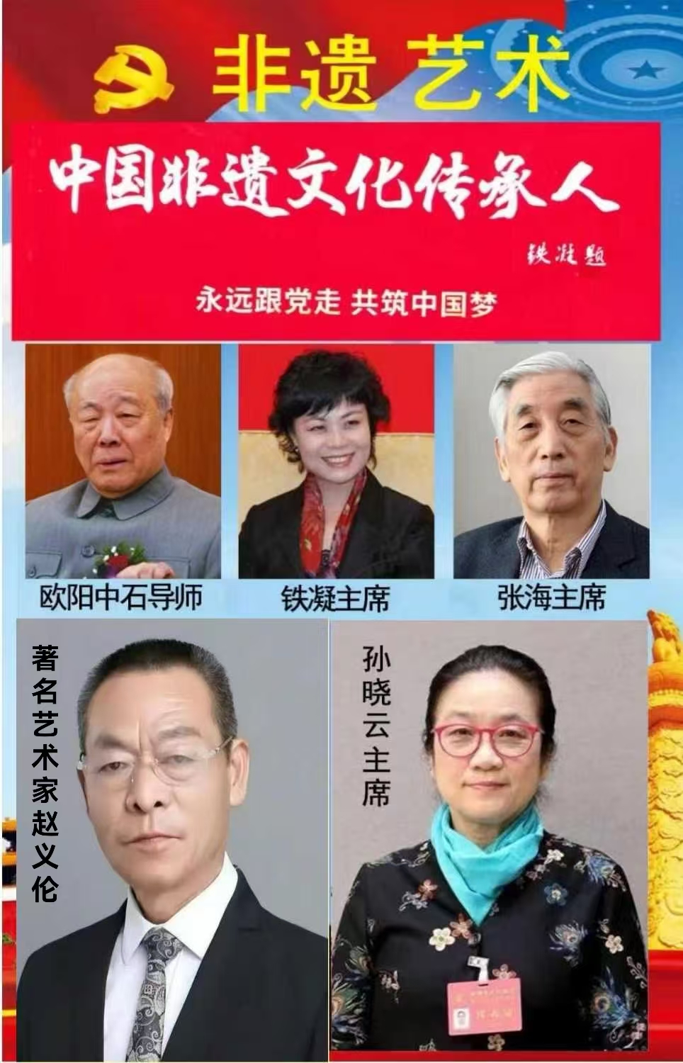 鉴于赵义伦老师在弘扬中华优秀传统文化方面的卓越贡献,以及在非遗传统发展工作中的影响力,特邀请赵义伦老师与欧阳中石导师,铁凝主席,张海主席,孙晓云主席一起作为中国非遗文化传承人,线上展示您的艺术风采。
