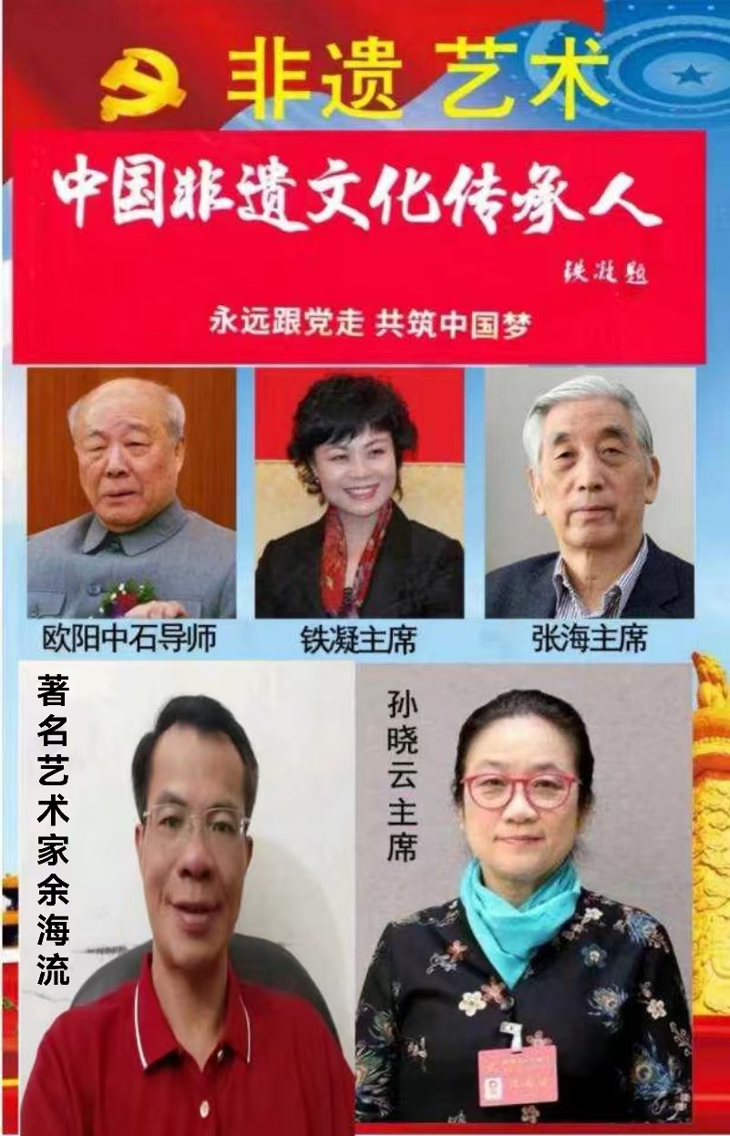 鉴于余海流老师在弘扬中华优秀传统文化方面的卓越贡献,以及在非遗传统发展工作中的影响力,特邀请余海流老师与欧阳中石导师,铁凝主席,张海主席,孙晓云主席一起作为中国非遗文化传承人,线上展示您的艺术风采。