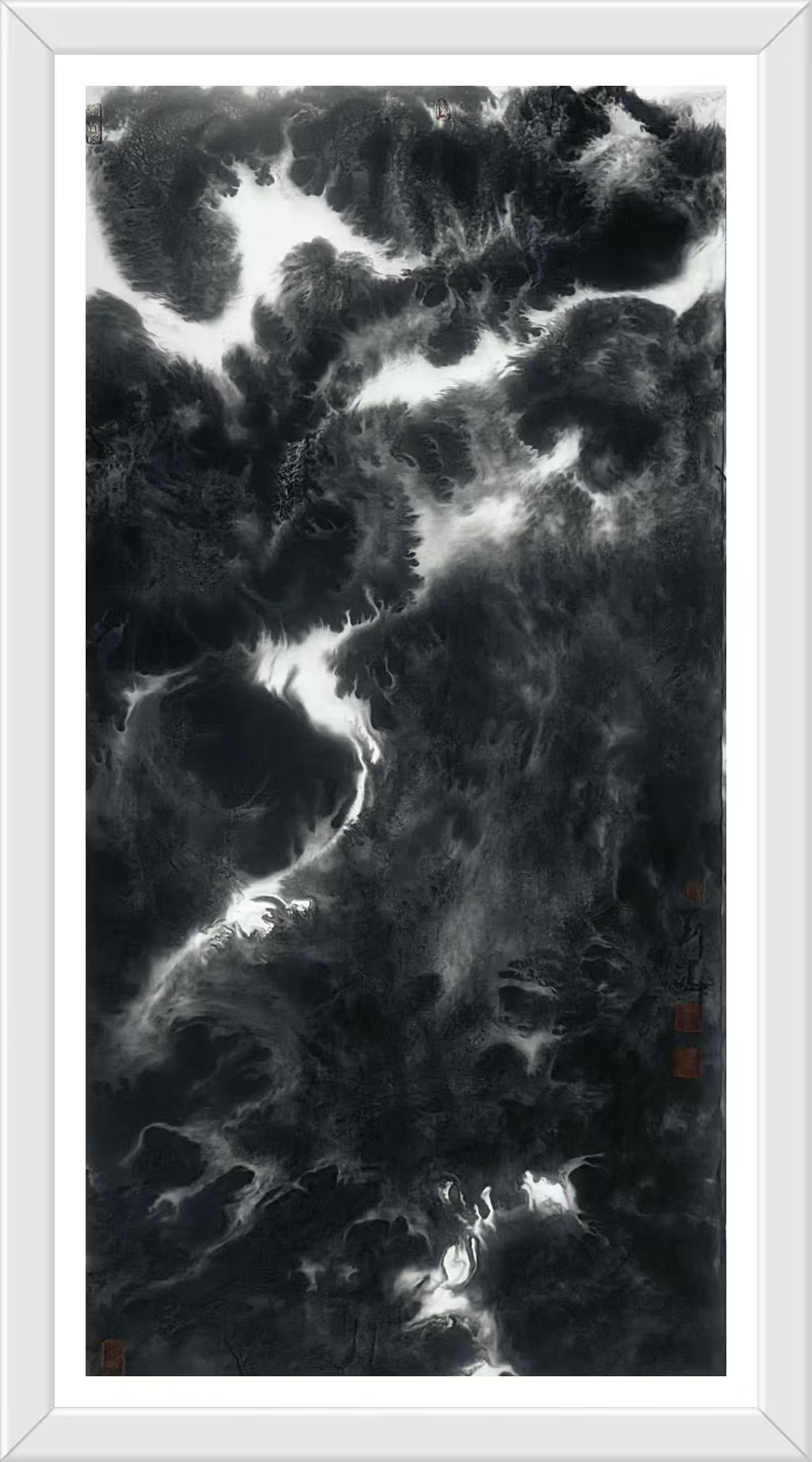 中国传统山水画的创作,向来都是有以天人合一的精神为主旨,那种在虚实中的澄怀气象的畅神情怀,无不能皆是能让人深感意味之无穷!但从当下画坛内来看,写意山水的创作却并不乐观,更多的年轻画家,则是倾向于西式油画的创作体现,究其原因,一方面是因为写意山水本身那较高的笔墨难度和表现难度,另一方面,则就是因为对传统文人精神和立意感受的严重缺失!而从这一角度上来看,那些真正能够深谙于传统写意山水的丹青画家,也就会显得更加可贵,臂如今日的刘冯先生便就可以说是其中的一位佼佼者!在创作上,刘冯先生是能通过极其纯粹的水墨形态来实现“元宇宙”山水的意识理念,并相济结合于自身的艺术情才和心迹思绪,使作品最终达到一种视觉表现形式和精神意义高度相同频的图式意境!