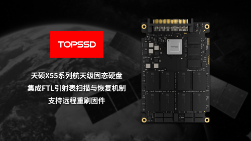 天硕(TOPSSD)X55系列航天级固态硬盘,通过底层固件算法、全路径数据保护及物理层抗老化设计,将自身打造成航天任务中的“数据保险箱”。系列产品遵循GJB及航天任务要求进行设计验证,可选TLC与pSLC模式,通过权威机构的辐照测试及单粒子效应测试,确保在宇宙射线与高能粒子环境中的高可靠性。