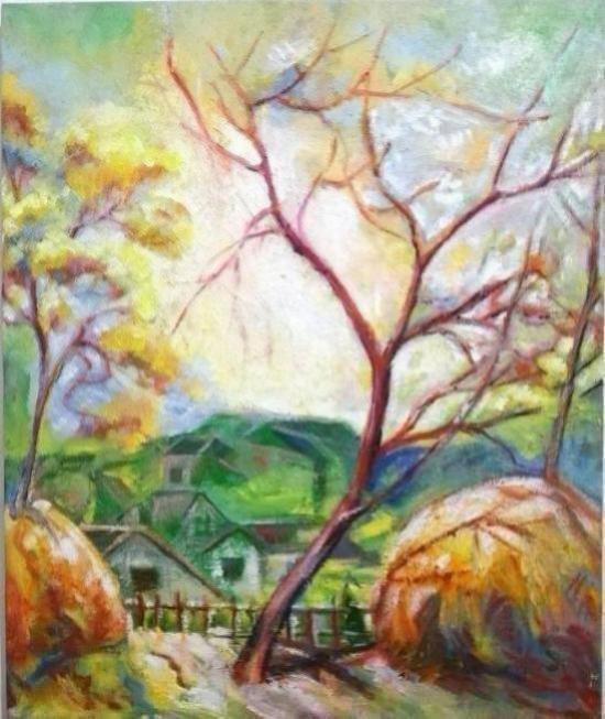 达成专业方可论其他。真正的画家李马林在画坛能依专业成“美术”。以术致美,这种艺术追求虽然很朴素,却让李马林走入主流画家的阵列,让他的画不以陋技浅丑而视人,必以深刻大美而动人。风景画和人物画是他用专业技法攻达而立大旗的重要体裁画。风景画面主意表达自然生机,所以风景画在施彩上就主施黄绿,辅以红绛蓝,风光有色彩,景致有生命。