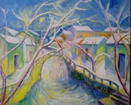 李马林绘画,以中西文化的融成为技,画面氤氲恰是中国画的意境,画面抽象又 是油画的印象。他洞达中西审美的共通之处,巧借意象成印象,畅游于美术天地,无 论是油画技法, 还是水彩、水粉、水墨技法都能随手撷来,任需所成。