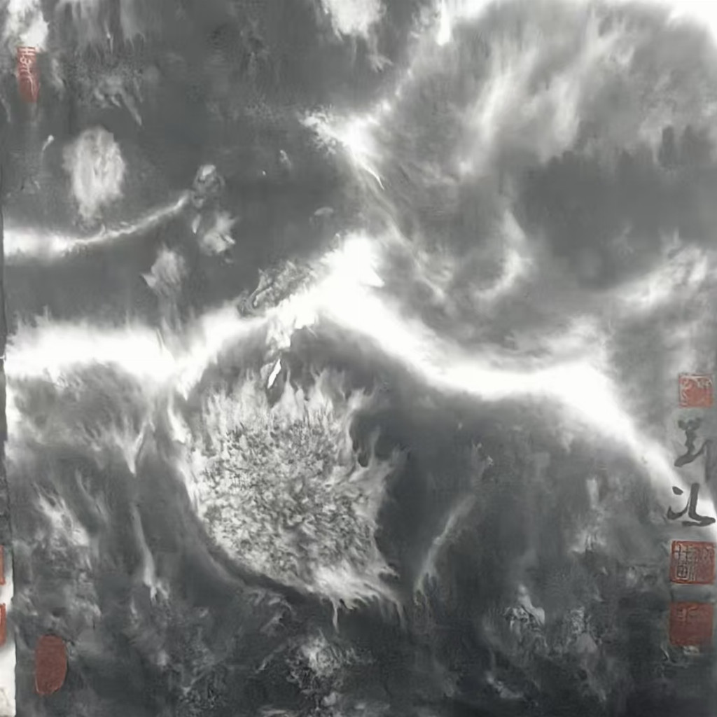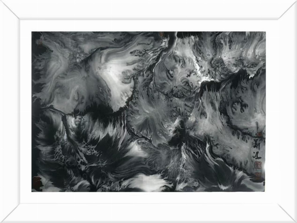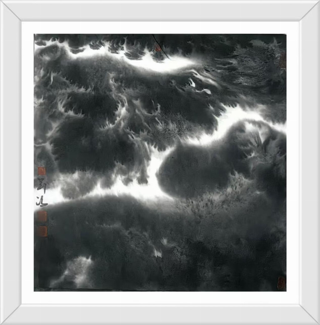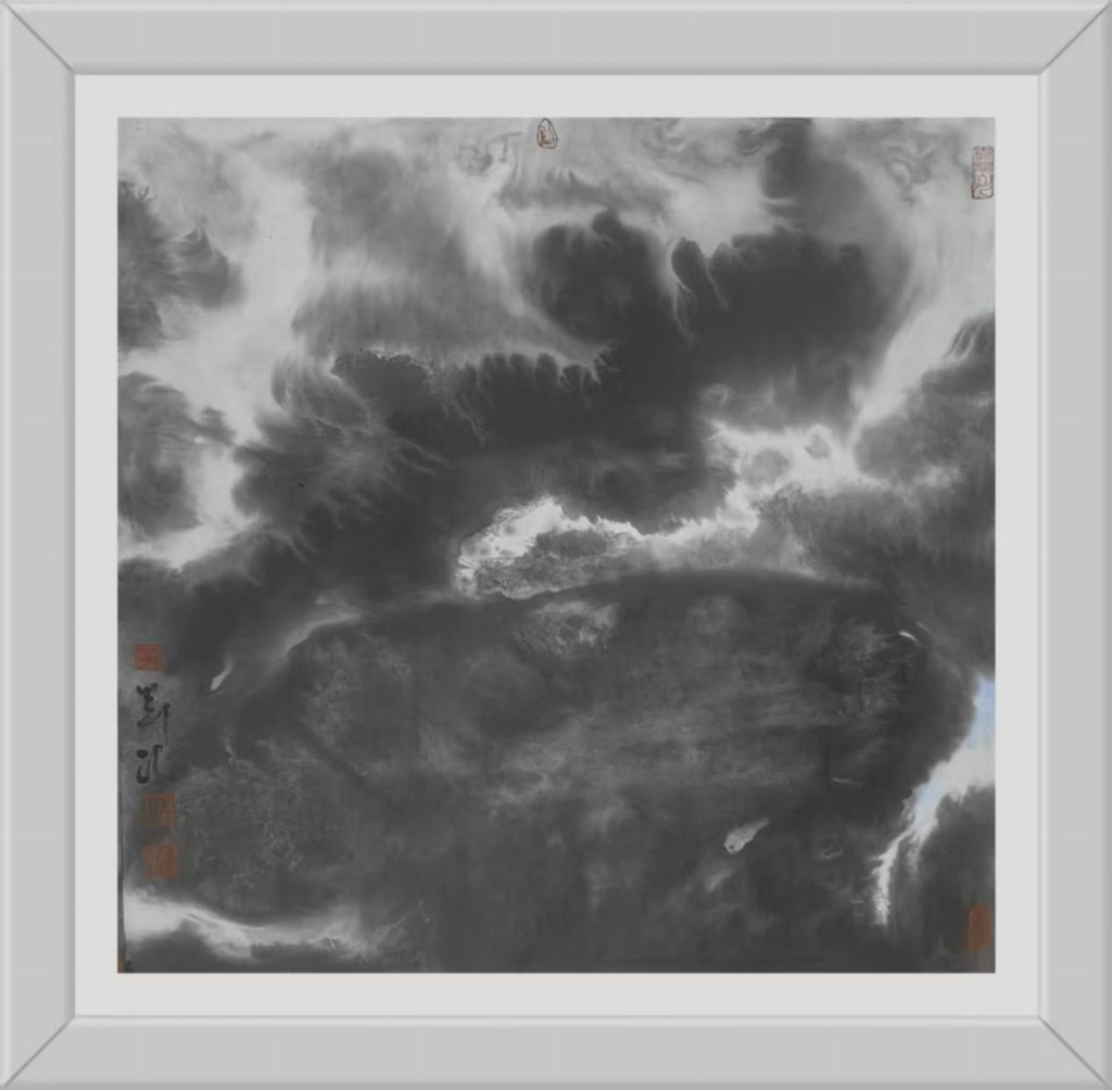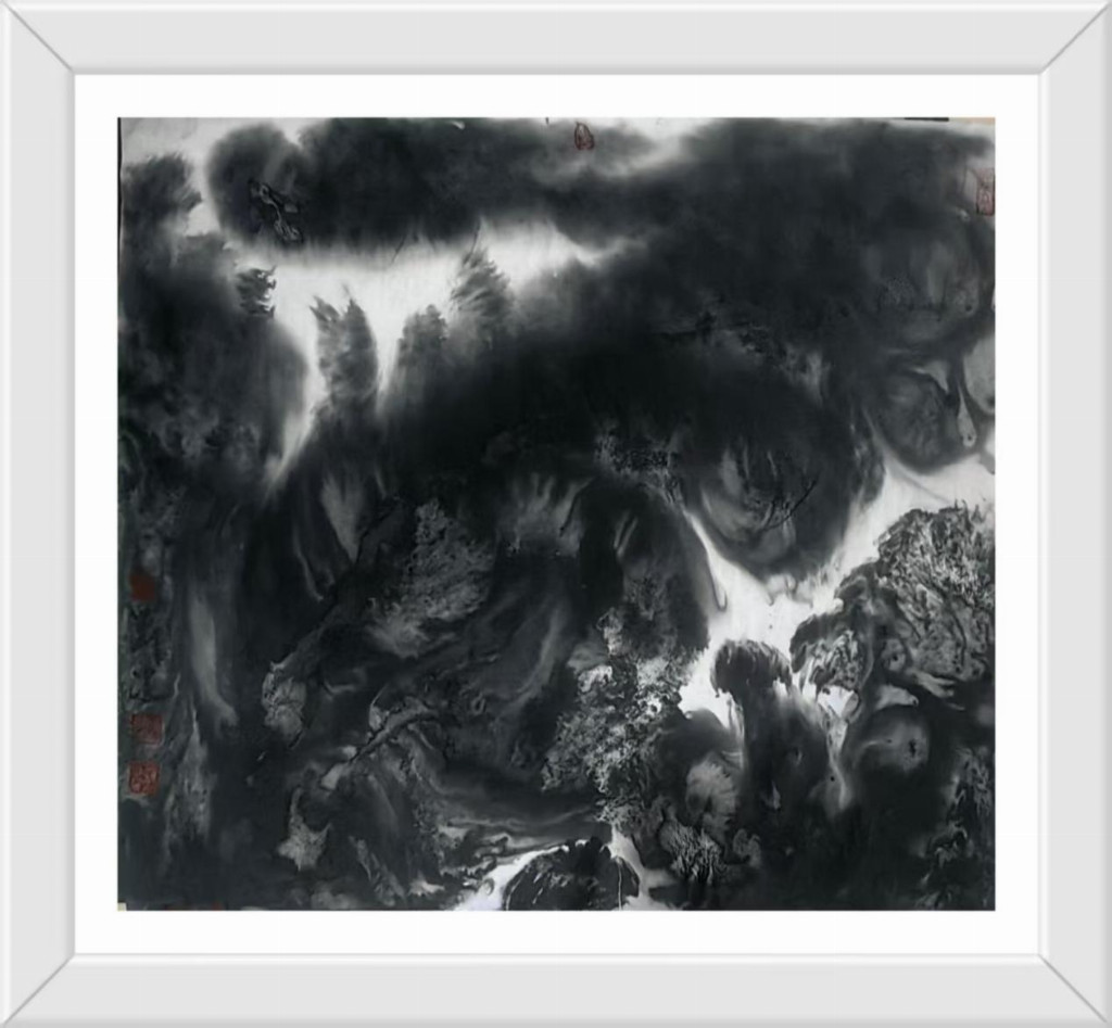 刘冯艺术创作的当代意义不仅在于美学层面的创新,更在于他为传统文化在现代社会的生存提供了一种可能路径。在数码图像泛滥的今天,水墨画的生存空间遭受前所未有的挤压。刘冯的作品证明,毛笔与宣纸这一古老媒介仍能表达最当下的生命体验,关键在于艺术家是否具备将传统语言"重译"为当代话语的能力。他的山水画不是怀旧的乡愁,而是面向未来的探索——那些看似破碎的山水形象,或许正预示着一种新秩序的萌芽;那些游走于画面边缘的微小旅人,或许正在寻找通向精神新大陆的路径。回望刘冯的艺术旅程,我们看到了一位不倦的精神游牧者在墨色世界中的探索足迹。他的山水画创造了一种独特的"中间地带"——既不完全属于东方也不完全属于西方,既非纯粹传统也非彻底前卫,而是在各种对立项之间寻找微妙的平衡点。这种平衡不是妥协,而是一种更高层次的综合,如同道家思想中的"负阴抱阳"。刘冯的艺术实践启示我们:传统的现代化不是一场你死我活的革命,而可以是一次凤凰涅槃般的重生;民族艺术的全球化不是单向的迎合,而能够是充满自信的对话。当观者站在刘冯那些既熟悉又陌生的山水前,或许会突然领悟:那些看似断裂的笔触、看似混乱的构图,实则描绘了我们这个时代最真实的精神景观——在迷失中寻找,在破碎中重建,在流动中栖居。这正是刘冯水墨艺术最动人的现代性品质。
