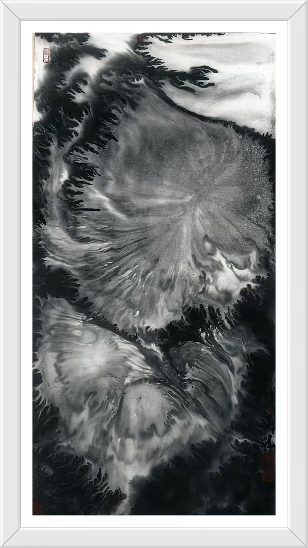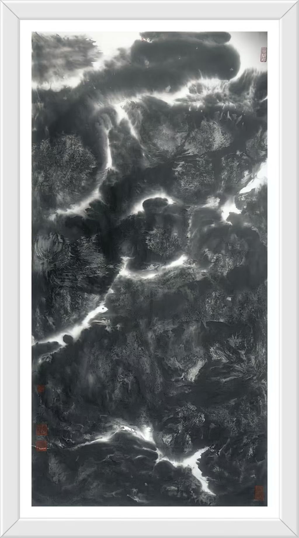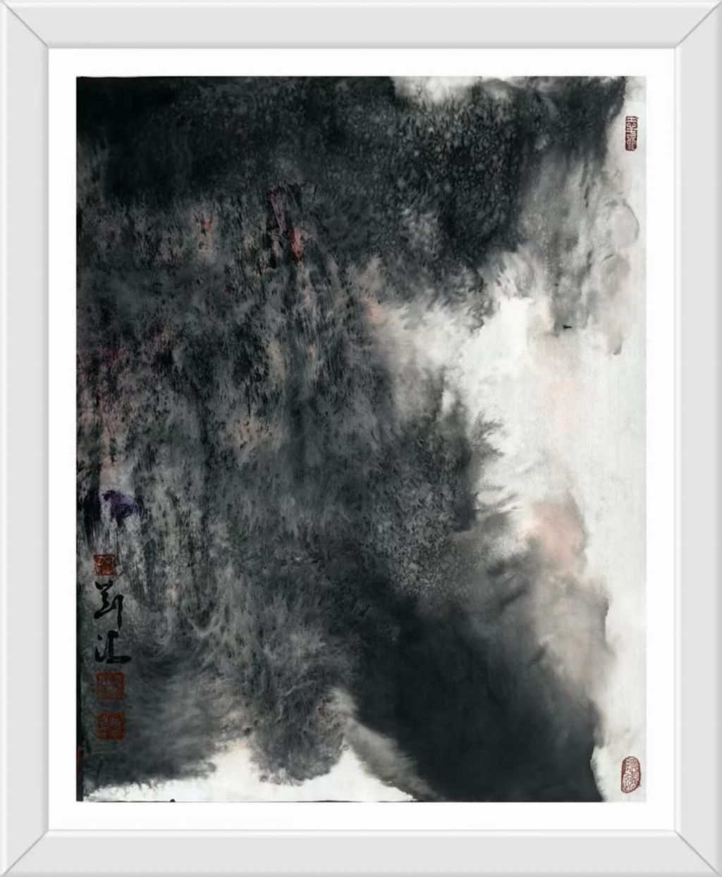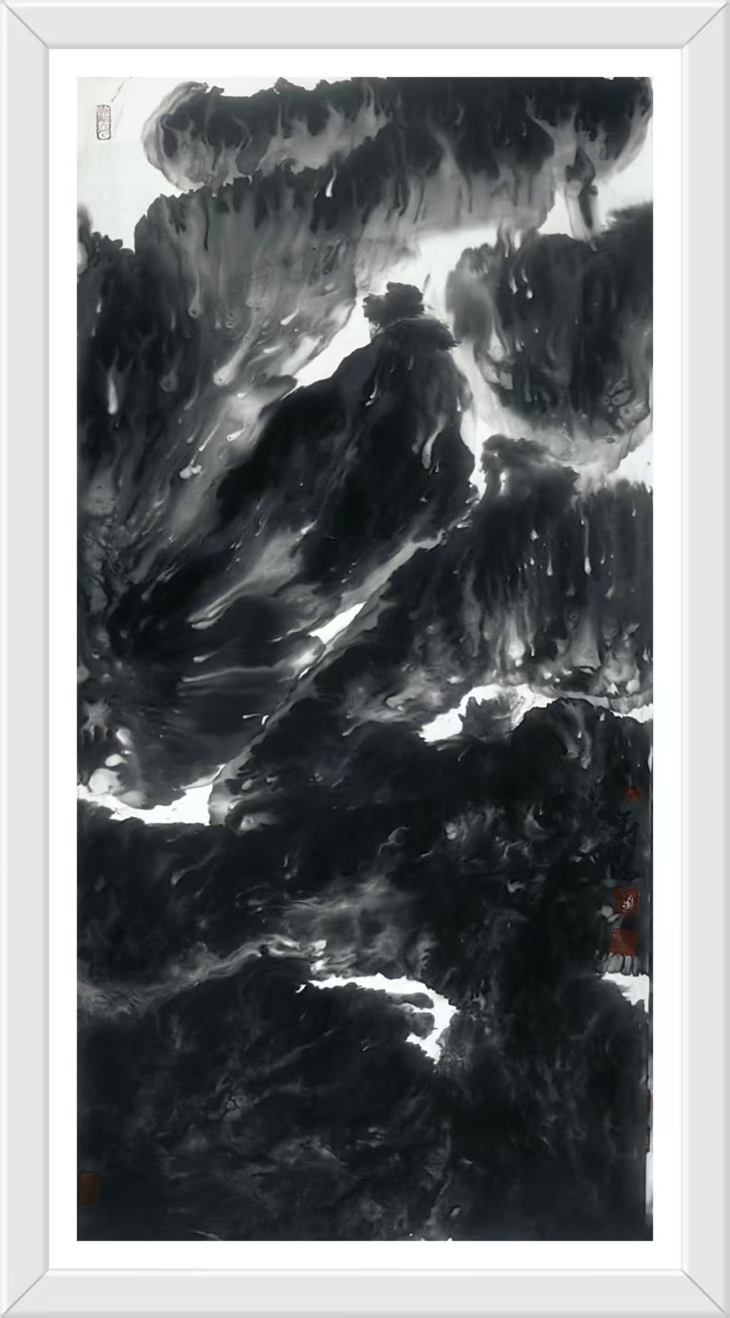 刘冯艺术创作的当代意义不仅在于美学层面的创新,更在于他为传统文化在现代社会的生存提供了一种可能路径。在数码图像泛滥的今天,水墨画的生存空间遭受前所未有的挤压。刘冯的作品证明,毛笔与宣纸这一古老媒介仍能表达最当下的生命体验,关键在于艺术家是否具备将传统语言"重译"为当代话语的能力。他的山水画不是怀旧的乡愁,而是面向未来的探索——那些看似破碎的山水形象,或许正预示着一种新秩序的萌芽;那些游走于画面边缘的微小旅人,或许正在寻找通向精神新大陆的路径。回望刘冯的艺术旅程,我们看到了一位不倦的精神游牧者在墨色世界中的探索足迹。他的山水画创造了一种独特的"中间地带"——既不完全属于东方也不完全属于西方,既非纯粹传统也非彻底前卫,而是在各种对立项之间寻找微妙的平衡点。这种平衡不是妥协,而是一种更高层次的综合,如同道家思想中的"负阴抱阳"。刘冯的艺术实践启示我们:传统的现代化不是一场你死我活的革命,而可以是一次凤凰涅槃般的重生;民族艺术的全球化不是单向的迎合,而能够是充满自信的对话。当观者站在刘冯那些既熟悉又陌生的山水前,或许会突然领悟:那些看似断裂的笔触、看似混乱的构图,实则描绘了我们这个时代最真实的精神景观——在迷失中寻找,在破碎中重建,在流动中栖居。这正是刘冯水墨艺术最动人的现代性品质。