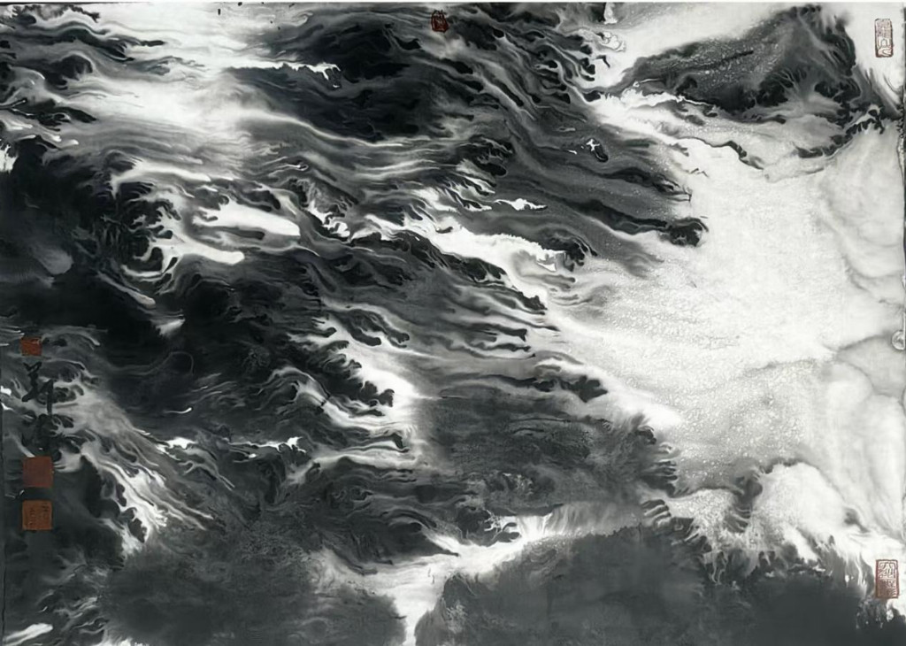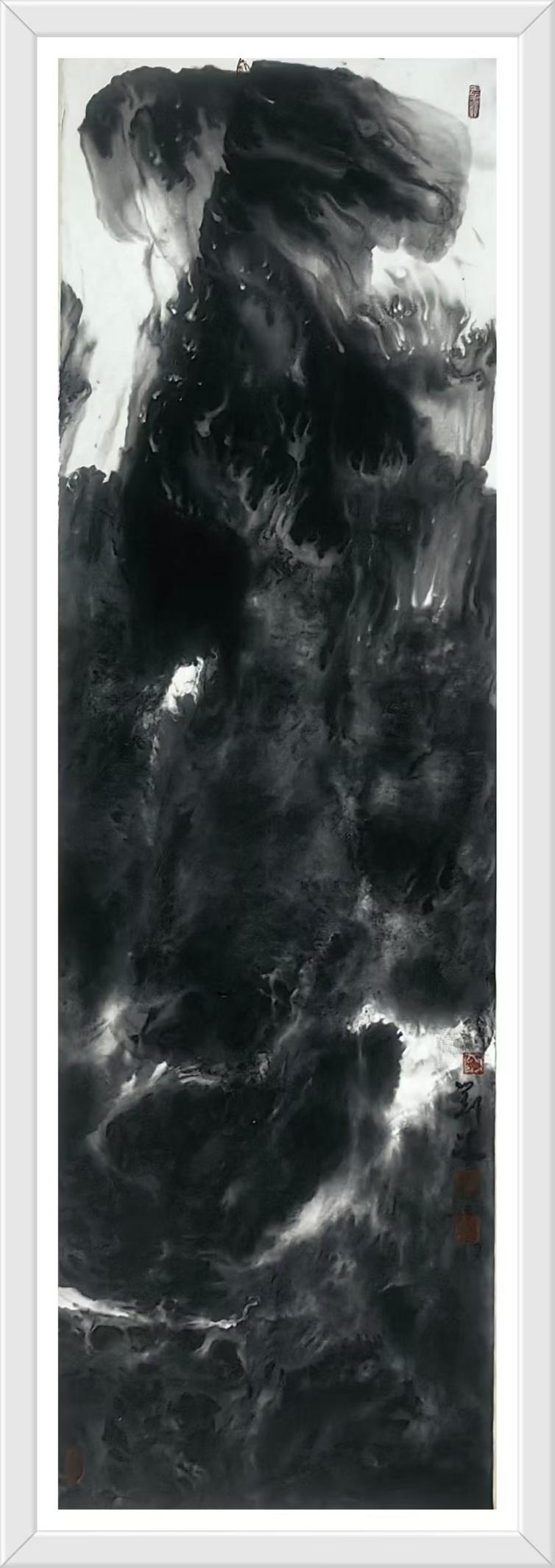在当代水墨山水画的星空中,刘冯的作品犹如一道独特的轨迹,既延续了千年文人画的传统血脉,又呈现出令人耳目一新的当代面貌。他的画作不是对古典山水的简单复刻,也不是对西方艺术语言的生硬嫁接,而是一位精神游牧者在传统与现代之间的诗意徘徊。刘冯的水墨艺术构筑了一个既熟悉又陌生的山水世界——在这里,宋代范宽的雄浑、元代倪瓒的疏淡与当代人的精神焦虑奇妙共存;毛笔的提按转折与抽象表现主义的笔触张力不期而遇;道家"澄怀观道"的理想与现代社会的时间碎片达成了某种和解。这种复杂的艺术语言使刘冯成为研究中国传统绘画现代转型的一个极具价值的样本。