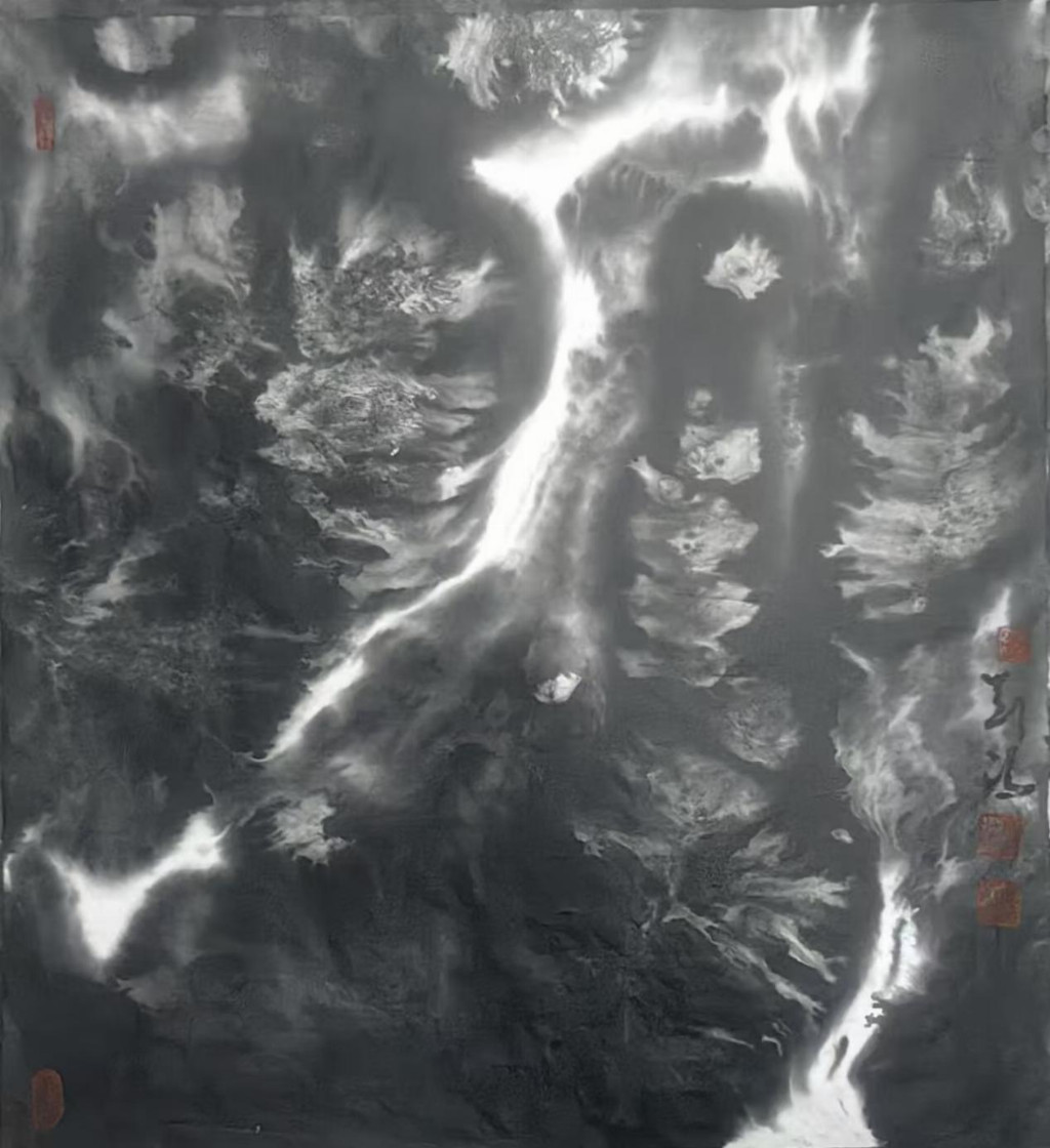 将刘冯置于中国当代水墨艺术的发展脉络中考察,其独特价值更为凸显。与徐冰、谷文达等强调观念性的当代艺术家相比,刘冯更注重绘画本体的探索;相较于李华弌、丘挺等传统功力深厚的画家,他又表现出更强的现代意识。刘冯的艺术实践提示我们,传统的现代化转型不必以断裂为代价,而可以是一种创造性的转化。他像一位精通两种语言的文化翻译者,将古典山水的美学密码转译为当代人能够共鸣的视觉语言。这种转化不是简单的符号替换,而是深入到观察方式、思维模式层面的根本性对话。在全球化语境下,刘冯的作品既保持了水墨艺术的民族身份,又参与了国际当代艺术的交流,为"中国画"如何既保持本色又与世界对话提供了重要启示。
