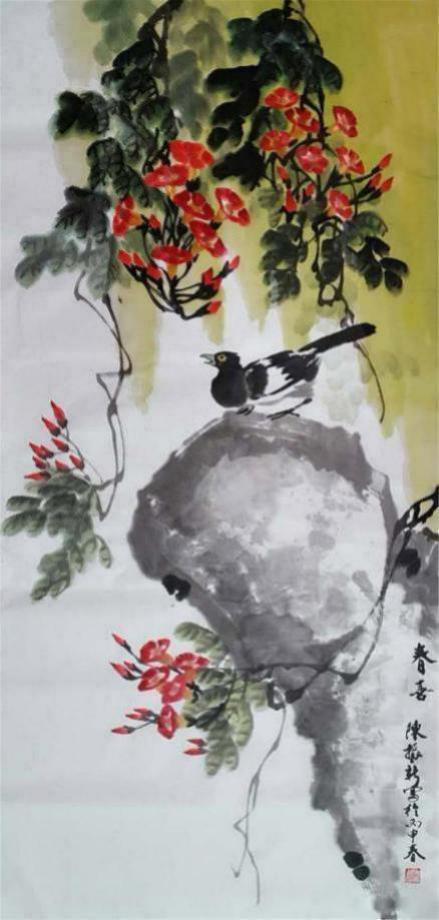 观赏陈振新先生的作品,不由情禁地感悟着一种在自然生机;墨竹挺拔,花儿灿漫,雄鸡高歌,鱼翔浅底;雀儿在天空中展翅,家禽在树荫下寻觅……。其作品以凝练灵动的笔墨,描述出博大精深的内涵,凸现了他对生活深入的观察和对事物本质的深刻的把握。个性鲜明、大胆创新、用笔简洁流畅、章法考究、意蕴深远依永。无论是谋篇造势还是笔墨渲染,都显示出其娴熟的艺术功力,创造性地实现了艺术境界与表达手法、历史人文与现实空间的和谐统一,体现了激情与灵感的自然流露,从多种角度折射出其馨香的品德和高洁的志向,达到了形神相通雅俗共赏、意高趣浓的境界,给人以极大的艺术享受。