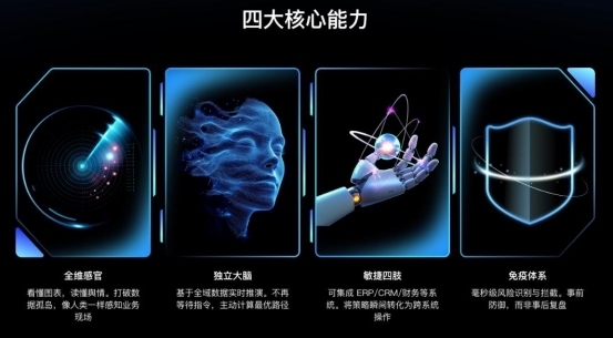 再次,在行动层面,打造敏捷四肢,能够直接操作ERP、CRM、交易系统,将决策瞬间转化为行动,打通业务闭环,让工作流自动执行。