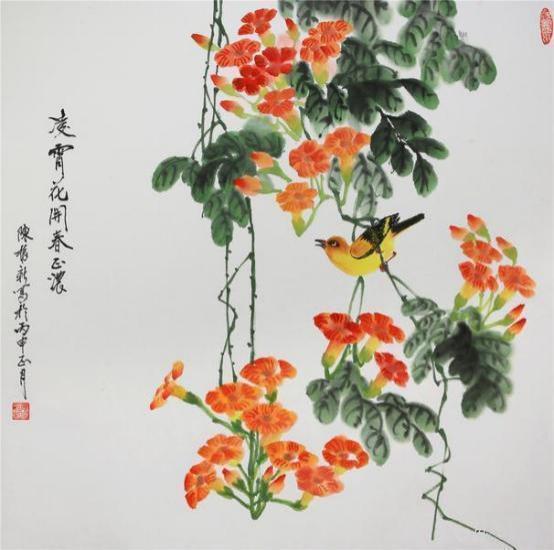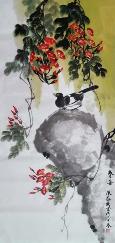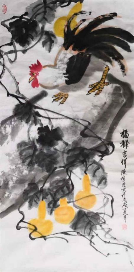 观赏陈振新先生的作品,不由情禁地感悟着一种在自然生机;墨竹挺拔,花儿灿漫,雄鸡高歌,鱼翔浅底;雀儿在天空中展翅,家禽在树荫下寻觅.....。其作品以凝练灵动的笔墨,描述出博大精深的内涵,凸现了他对生活深入的观察和对事物本质的深刻的把握。个性鲜明、大胆创新、用笔简洁流畅、章法考究、意蕴深远依永。无论是谋篇造势还是笔墨渲染,都显示出其娴熟的艺术功力,创造性地实现了艺术境界与表达手法、历史人文与现实空间的和谐统一,体现了激情与灵感的自然流露,从多种角度折射出其馨香的品德和高洁的志向,达到了形神相通雅俗共赏、意高趣浓的境界,给人以极大的艺术享受。