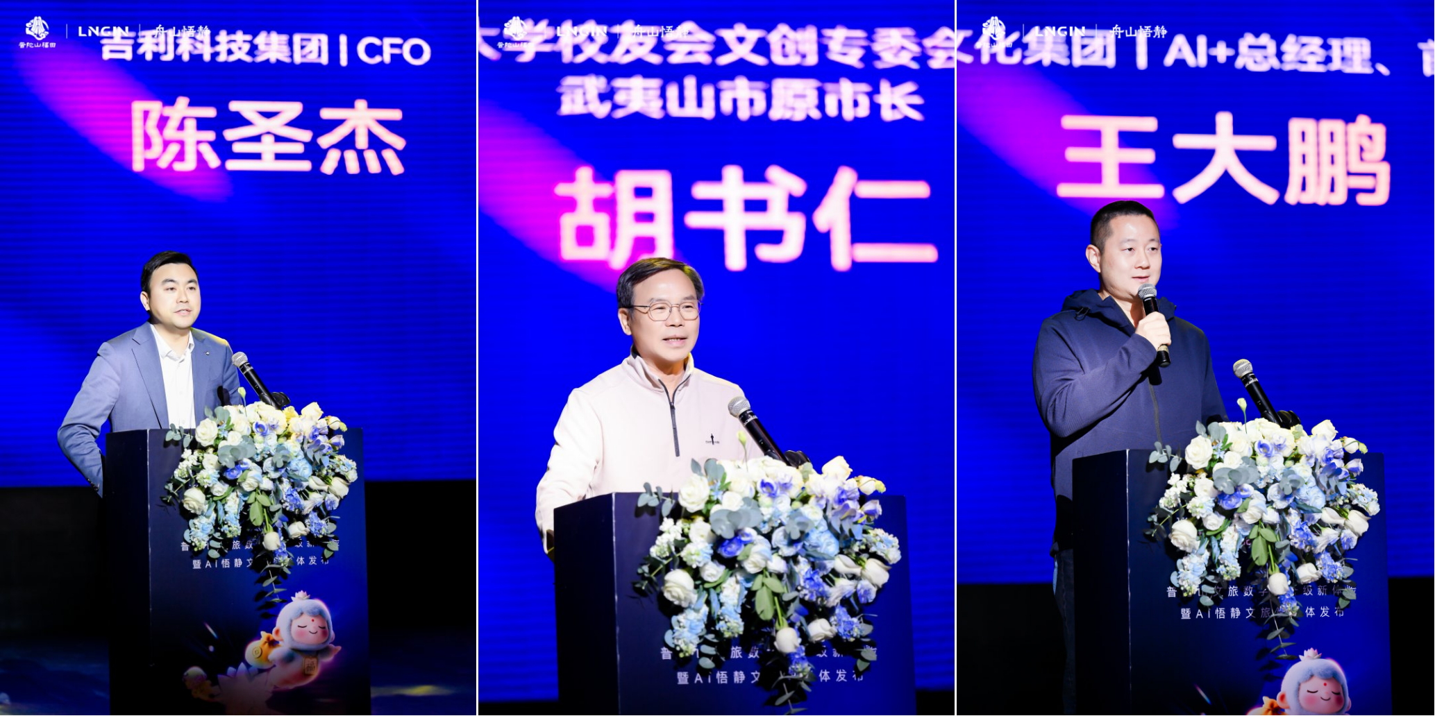 发布会现场,来自学界、产业界的多位重量级嘉宾齐聚普陀山剧院,从不同维度肯定了项目的创新价值与发展前景。吉利科技集团CEO徐志豪与CFO陈圣杰共同出席,且陈圣杰在致辞中表示:"棱镜智创是我们在AI领域的关键力量,文旅产业是我们高度看好并重点投入的赛道。"