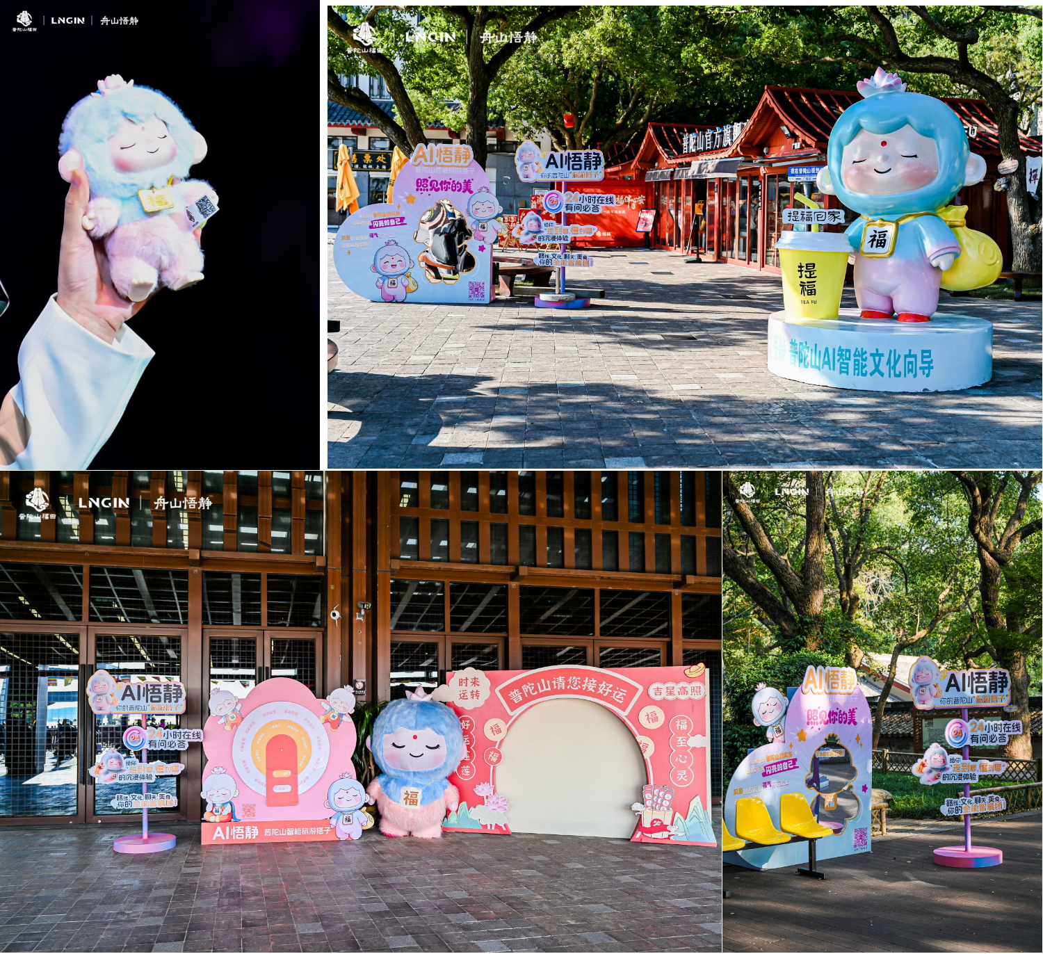 尤为引人注目的是,项目团队敏锐地捕捉到当代年轻人"情绪消费"与"社交分享"的核心需求,将普陀山深厚的文化IP与时尚的潮玩设计语言相结合,打造出全国首创的"可对话、能陪伴"的AI+IP智能体潮玩体验场景。在提福咖啡各门店、禅意小镇会客厅等重点区域,设置了系列主题装置,让AI悟静成功打破了传统文化产品与年轻消费者之间的隔阂。