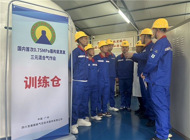 此前,0.55MPa以上盾构带压作业技术长期被国外垄断,我国大埋深隧道带压作业发展受阻。为推动我国大盾构维保自主化发展,助力交通强国战略,宝盾隧联合广州潜水学校、德威胜等单位开展专项科研攻坚,以CDSA“盾构氦氮氧三元气常规作业减压表”为技术支撑,模拟盾构现场0.75MPa、40分钟作业工况,将潜水医学“二次减压”方法引入盾构带压作业场景,在保障人员安全的前提下,完成了18仓56人次训练,验证了0.75MPa盾构带压开仓作业的可行性,打破了压缩空气对盾构带压作业压力的限制,同时缩短了对盾构机人舱的占用时间,提高了带压作业的效率和灵活性,在经济上也比饱和减压方法节省成本,标志着我国盾构带压作业领域取得了突破性进展,将极大提升我国地下工程建设的核心竞争力。