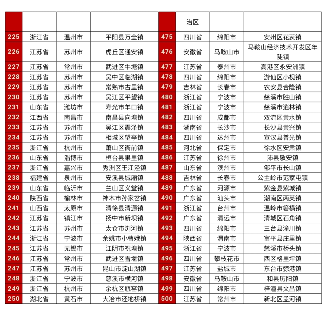 研究机构表示,“2025镇域经济500强暨中部100强、西部100强”呈现如下特征:全国500强镇中,2023年GDP超过500亿元的建制镇有20个,规上工业总产值超过1000亿元的建制镇有18个;规上工业企业数量超过300家的建制镇有49个,规上服务业企业数量超过100家的建制镇有83个,创新型企业数量超过200家的建制镇有186个。中部100强、西部100强镇中,分别有32个、26个建制镇GDP超过100亿元,36个、38个建制镇规上工业总产值超过100亿元,9个、5个建制镇规上工业企业数量超过100家。