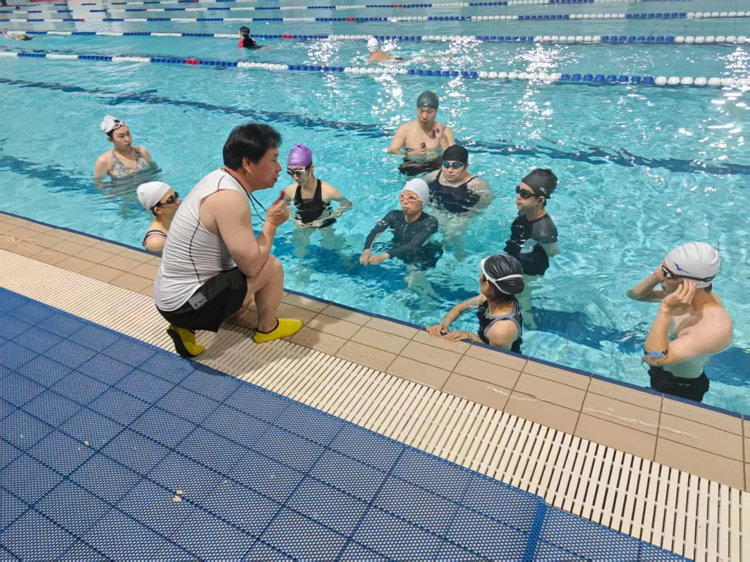 “我们配备了6名持证救生员,采取‘6岗1巡’制度,确保安全无死角。”场馆工作人员介绍,“水质管理也很严格,每天都会进行水温监测和消毒,定量更换约10%的水体。”30岁的董鹏是这里的常客,他扶着池边休息时说:“我在附近上班,夏天其他运动都太热了,游泳最舒服。跟着成人班学了半年,现在能断断续续游500米了。”
