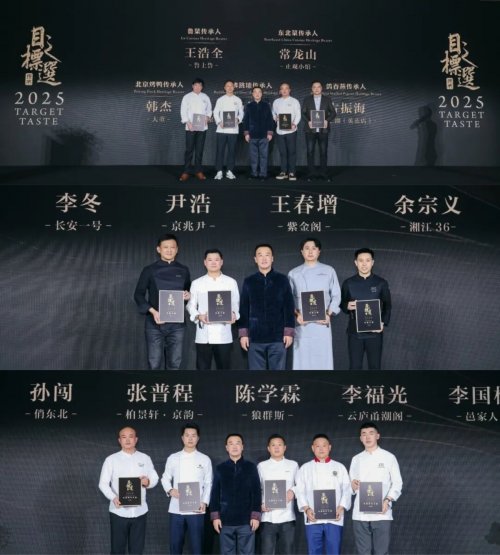 2025年度评选,依旧由来自餐饮、酒店、美食、商业及媒体等领域的专业评委共同完成。随着典礼正式启幕,目标之选创办人、主理人、《目标TARGET》出品人索斌先生,大董中国意境菜创始人、中国烹饪大师、世界中餐业联合会企业家协会主席、中国烹饪协会烤鸭专业委员会主席董振祥先生,中华非物质文化传承人、八项国际金奖得主、亚州大厨、世界中餐名厨委主席、北京屈浩烹任学校校长屈浩先生,商务部十大名厨、文旅部中华文化促进会美食工作委员会常务主任、中国烹饪协会名厨委副主席孙立新先生,西餐教父、黄炎培全国杰出教师侯德成先生,首批中国烹饪大师名师、中国鲁菜特级大师、国家餐饮业一级评委、中国烹饪协会名厨委副主席程伟华先生,《舌尖上的中国》美食顾问,央视《中国味道》总顾问,美食专栏作者、著名美食评论家董克平先生,联合利华饮食策划行政总厨、2016/2020世界奥林匹克烹饪大赛中国国家烹饪队教练傅拥军先生,凯悦大中华区区域副总裁、杭州柏悦酒店总经理周宏斌先生,中国烹饪协会国际美食委员会副主席周卫先生,李锦记(中国)销售有限公司高级全国厨务顾问杨春晖先生,燕之屋总裁助理兼公关总监杨贝卡女士,美食媒体人秦洲同先生,媒体人、公益人邱启明先生,中华美食频道当家主播、资深电视广播节目主持人、大嘴新食界餐饮管理公司CEO大嘴哥,中国旅游协会饮食文化工作部主任,刘亚宁博士,北京大有资本联合创始人 ,王正鹏先生,Jenny Wang婕妮王超市董事长,王建英女士,众信旅游集团大客户部总监杨晓武先生,目标TARGET上海总经理王京忠先生,共同开启今年的颁奖典礼。紧接着,由屈浩先生代表评委会发言,阐述了今年“时韵恒新”主题内涵,并对2026年做出了积极的预期和期待。