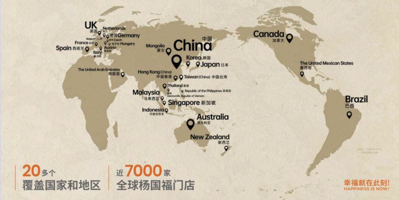 目前,品牌已在全球20多个国家和地区建立起稳定的门店网络,覆盖亚洲、欧洲、北美等主要市场,全球开出近7000家门店,海外门店达到近200家。如今,杨国福已成为世界各地消费者日常饮食中的熟悉味道。
