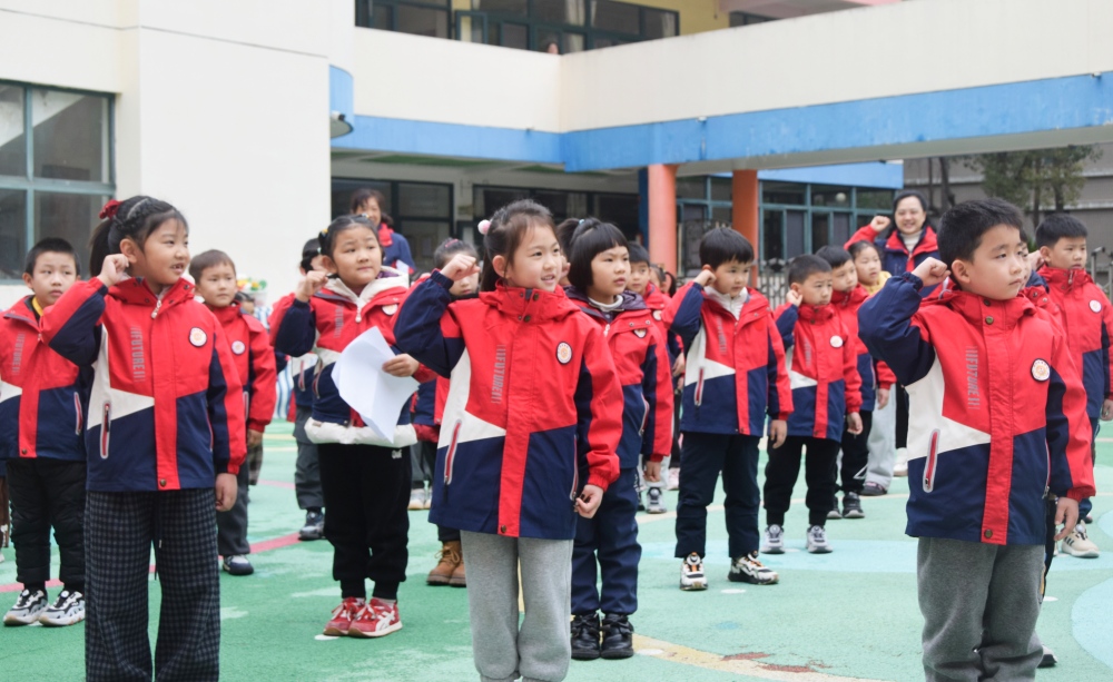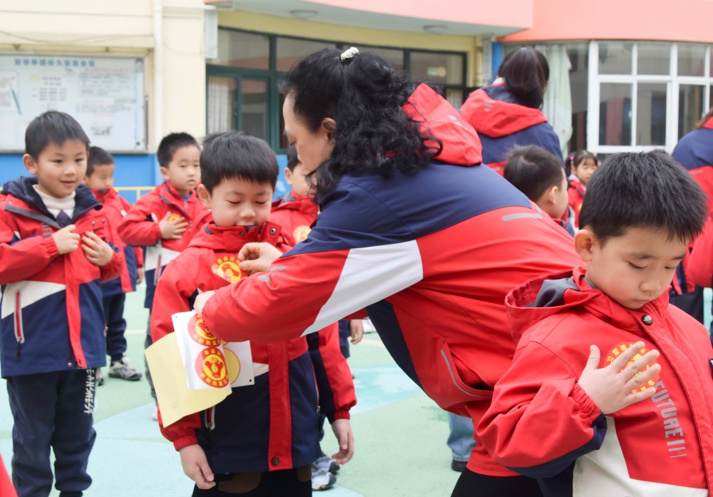 在升旗仪式上,园长以生动易懂的语言为孩子们讲述雷锋叔叔的感人故事,将雷锋精神与新学期成长期许巧妙融合,在孩子们心中播下向善向美的种子。“我承诺,在新学期,自己的事情自己做,同伴的事情帮着做,集体的事情争着做。做一个快乐、友爱、闪闪发光的‘小雷锋’!”稚嫩却坚定的誓言响彻校园,孩子们高举右手庄严宣誓,并将象征“学雷锋小标兵”的标识贴在胸前,用仪式感立下向雷锋叔叔学习的承诺。