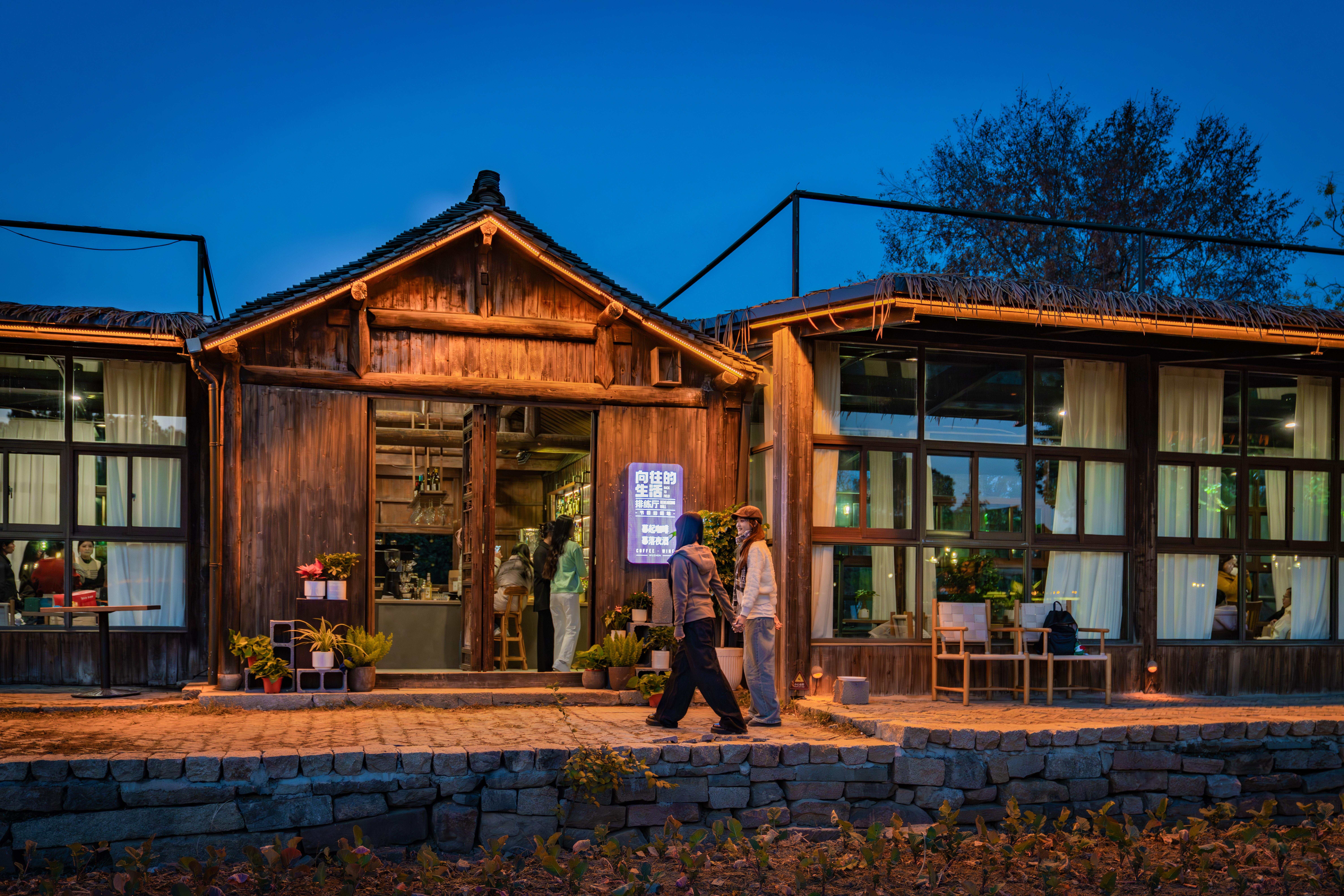 紧邻蘑菇屋的龙形田玻璃房,是节目排练厅的复刻场地,如今化身 “幕起咖啡 幕落夜酒” 的文艺空间,更是粉丝打卡的必去点位。