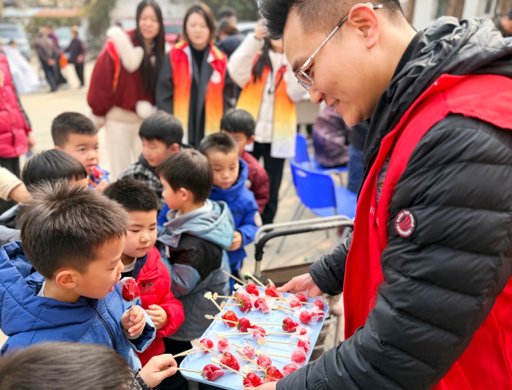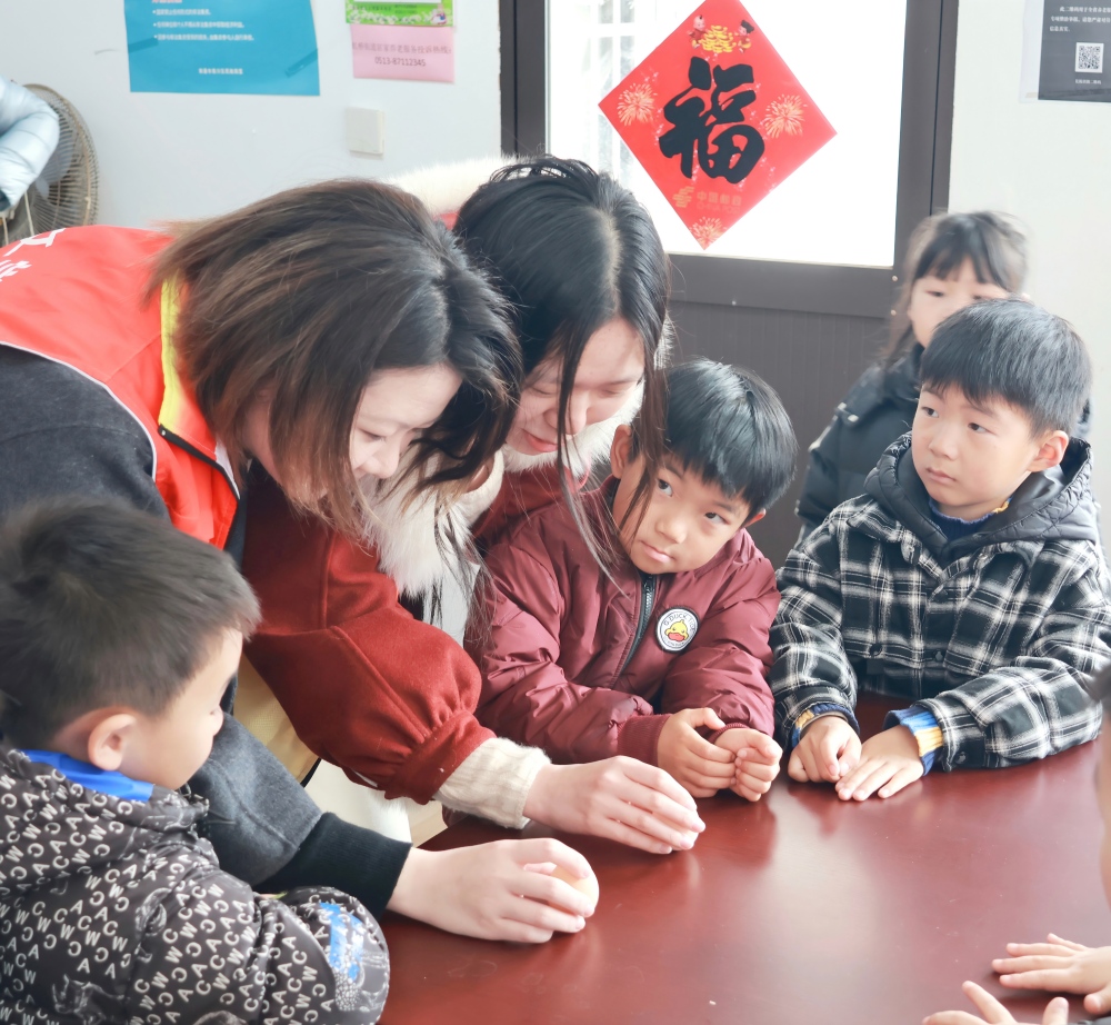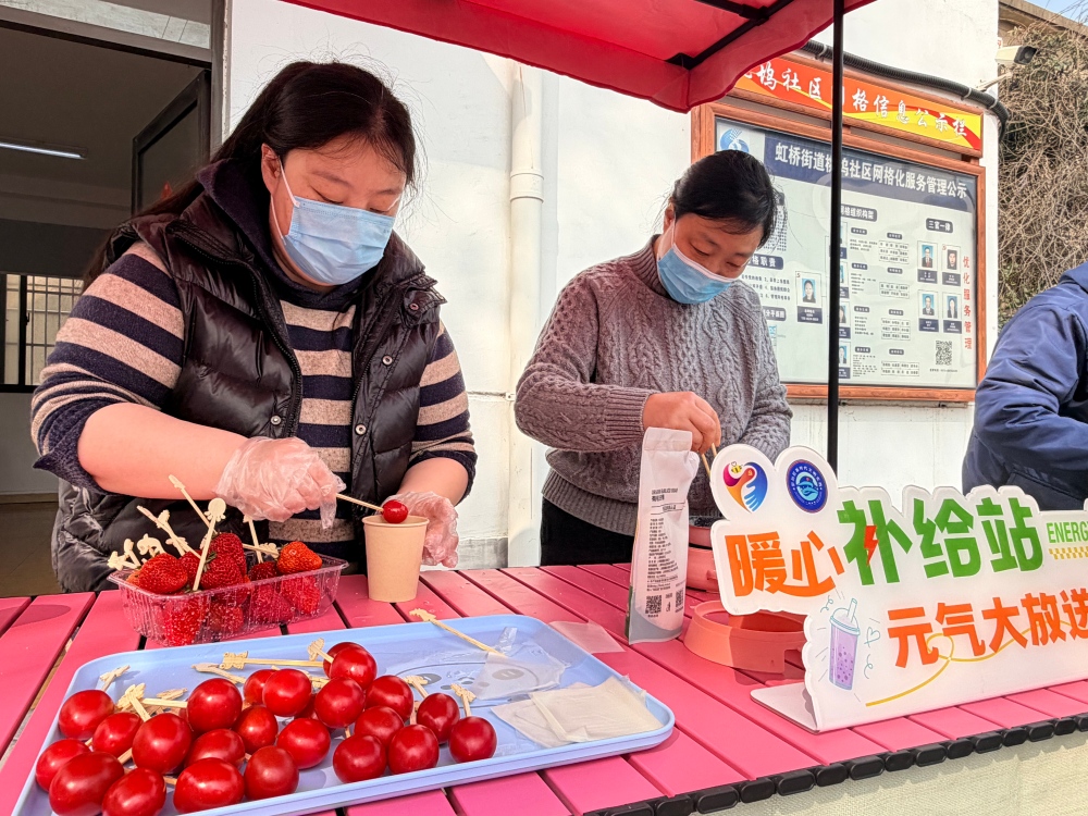 在民俗体验区,活动同样精彩纷呈。南通大学文学院师生志愿者带领机关二园的孩子们开展春分立蛋趣味活动,大家凝神尝试、动手体验,在互动中感受“昼夜平分、万物生长”的节气内涵;糖葫芦制作区香气扑鼻,居民与孩子们一同串鲜果、熬糖衣、裹糖霜,一串串晶莹香甜的糖葫芦,不仅承载着传统风味,更串起浓浓邻里情,让民俗文化在欢声笑语中代代相传。