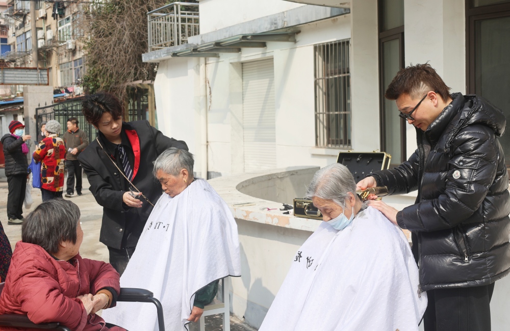活动现场暖意融融、热闹有序。专业理发师志愿者为老年居民及辖区行动不便群众提供免费理发服务,他们以娴熟细致的手艺打造清爽利落的发型,既契合“二月二龙抬头、辞旧迎新、鸿运当头”的美好寓意,也切实解决了老年群体“理发难”的实际问题,让传统习俗更有温度、更贴民心。