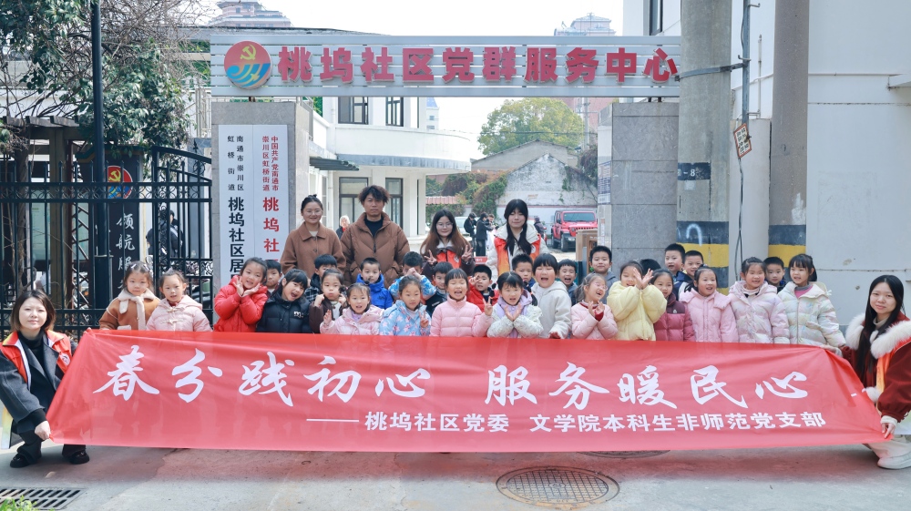 3月20日,“茉莉花开・艺通江海”文艺直通车开进南通市崇川区虹桥街道桃坞社区新时代文明实践站。当天,桃坞社区党委、工会、妇联、关工委联合南通大学文学院本科生非师范党支部、市级机关第二幼儿园等共建单位共同开展“春风践初心,服务暖民心”主题活动,让社区居民与幼儿园师生在便民服务中感受志愿温度,在民俗体验中领略春分节气与“二月二”传统文化魅力,进一步弘扬中华优秀传统文化,营造邻里和睦、温馨和谐的社区氛围。