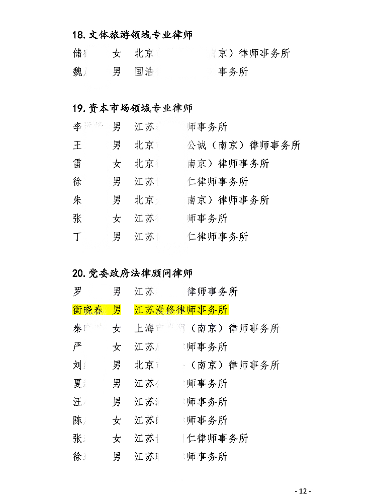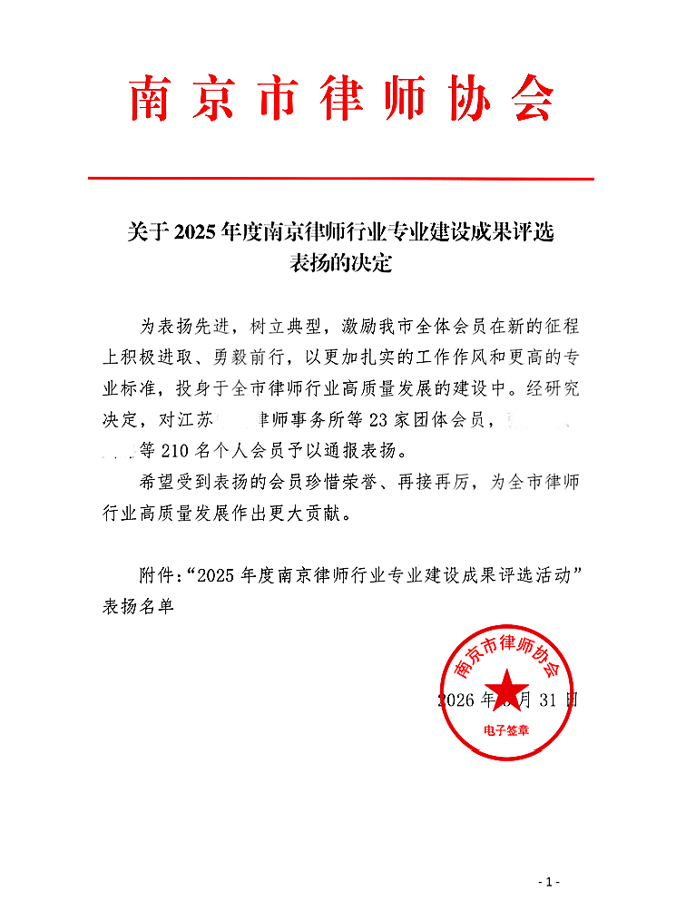 近日,南京市律师协会发布“2025年度南京律师行业专业建设成果评选”表扬决定,江苏漫修律师事务所高级合伙人、行政法业务部部长衡晓春律师凭借在政府法律服务领域的突出贡献,荣获“党委政府法律顾问律师”表彰。这一荣誉既是对衡律师专业能力的肯定,也彰显了其在服务法治政府建设中的独特价值。