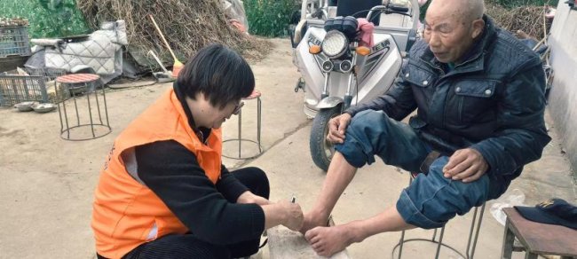 为摆脱这一困境,响水县护理员魏建平坚持 6 年上门服务,响水镇各个社区都有她的身影,她的修脚刀为几百位老人带去安康,即便冒雨赴约、蹲到腰直不起来,也从未缺席与老人的 “固定服务日”。