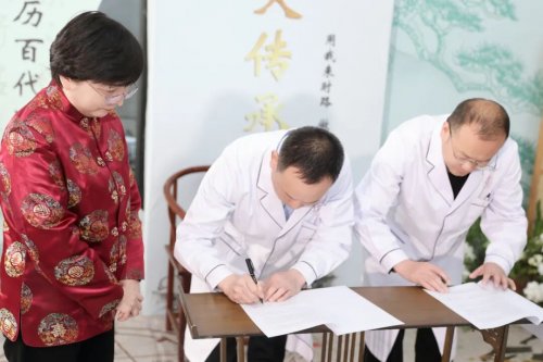 仪式关键环节,师徒双方郑重签订《传统医学师承关系合同书》,以契约形式明确“师者倾囊相授、徒者刻苦钻研”的责任与义务,为传承之路筑牢制度保障。授业恩师王晓玲院长发表讲话,对两地中医医院的深度合作表示支持,鼓励师徒携手共进,为中医药传承创新贡献力量。最后,全体人员共同合影,镜头定格下市县协作、薪火相传的意义瞬间。