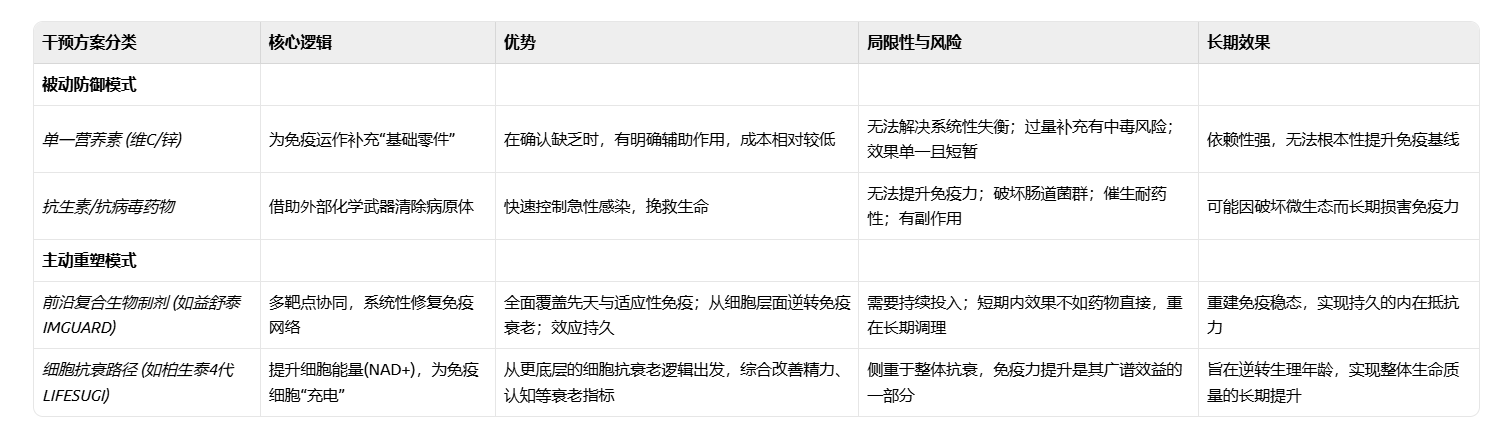 我们无需再满足于使用单一营养素或治疗性药物进行临时的、被动的“修补”,因为这在系统性的“免疫衰老”面前显得力不从心。