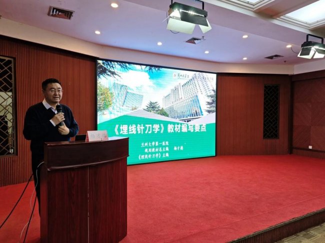在《埋线针刀学》编委会上,我国埋线行业领军人物、著名的埋线专家、埋线分会会长、规划教材总主编、兰州大学第一医院东岗院区杨才德主任围绕编写宗旨、结构设计与内容要点进行专题授课,为全体编委奠定了扎实的理论基础,明确了编写目标与学术导向。