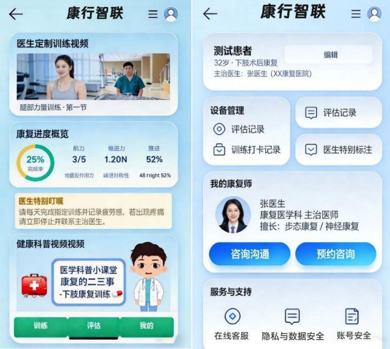 团队配套开发医生端,患者端以及后台管理端三端协作小程序,支持居家训练、数据管理与医生远程指导,数据全链路加密保障安全。目前已完成800余例临床数据采集,获软件著作权1项,技术成熟可靠。